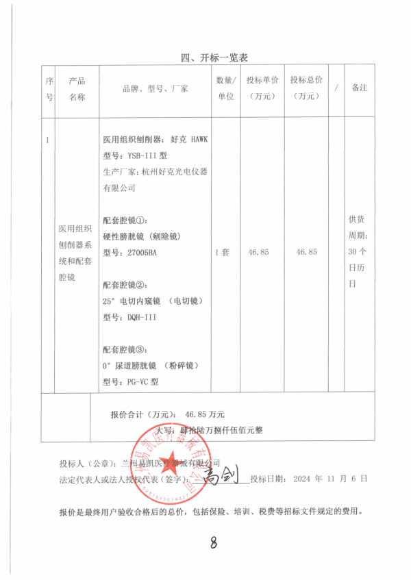四、中标日期:2024年11月06日