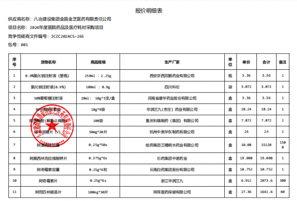 八冶建设集团金昌金芝医药有限责任公司 | 详见附件 | 详见 附件 | 详见 附件 | 详见 附件 | 详见附件 | 详见 附件 | 详见 附件 |