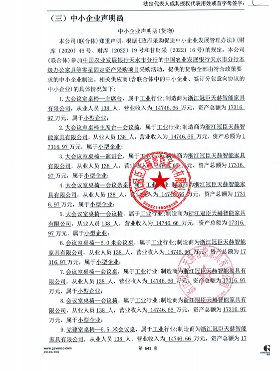 二、项目名称:中国农业发展银行天水市分行本级办公家具等零星固定资产采购项目