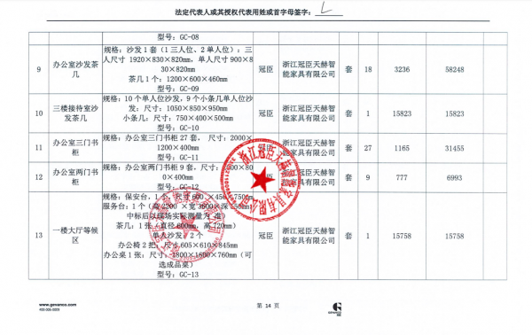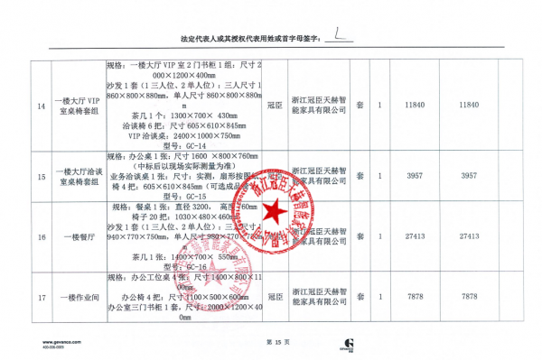 中标供应商名称:浙江冠臣天赫智能家具有限公司