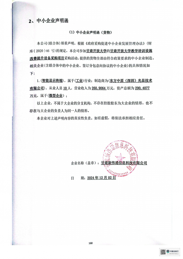 甘肃开放大学教学培训设施改善提升设备采购项目中标公告