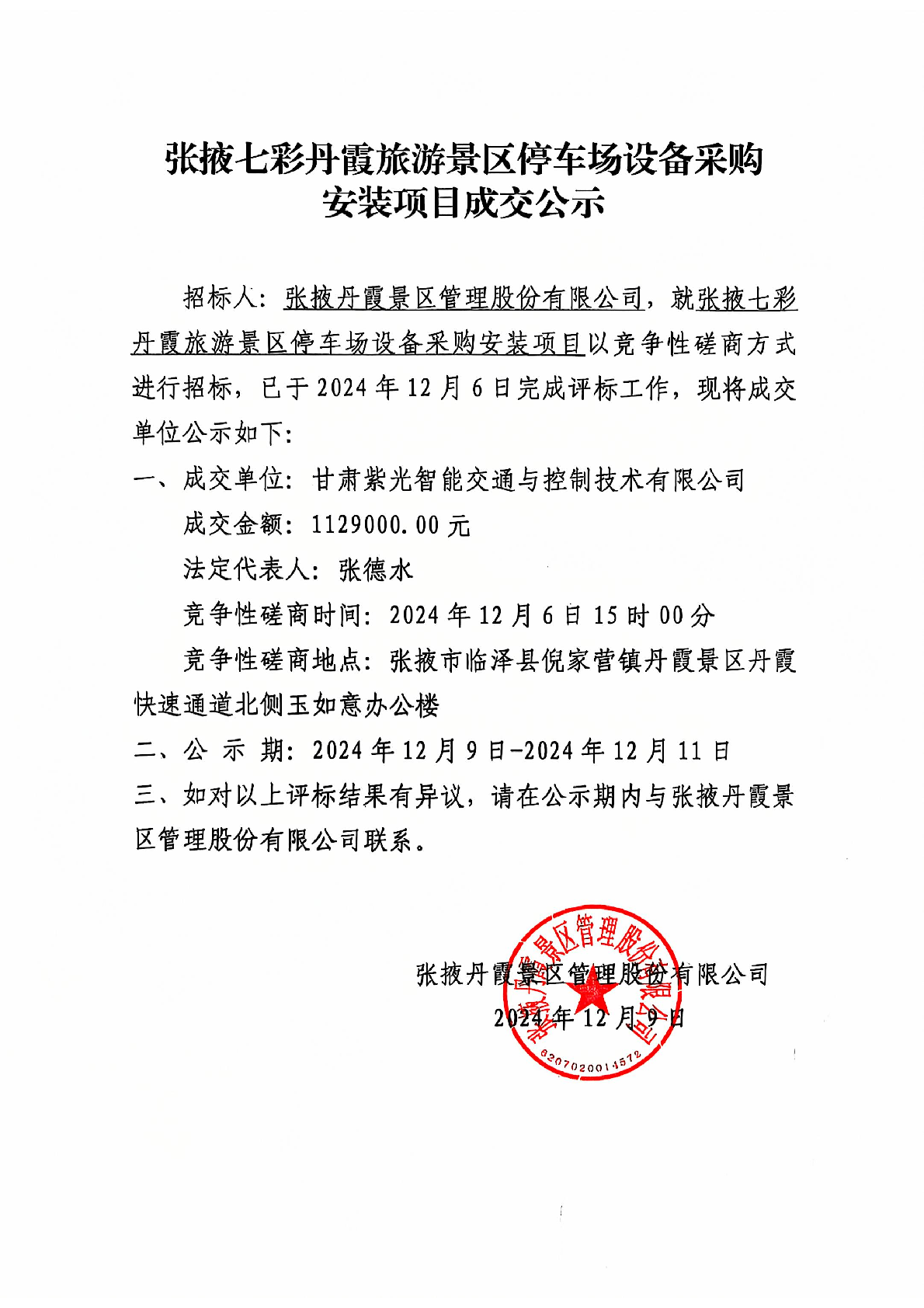 张掖七彩丹霞旅游景区停车场设备采购安装项目成交公示