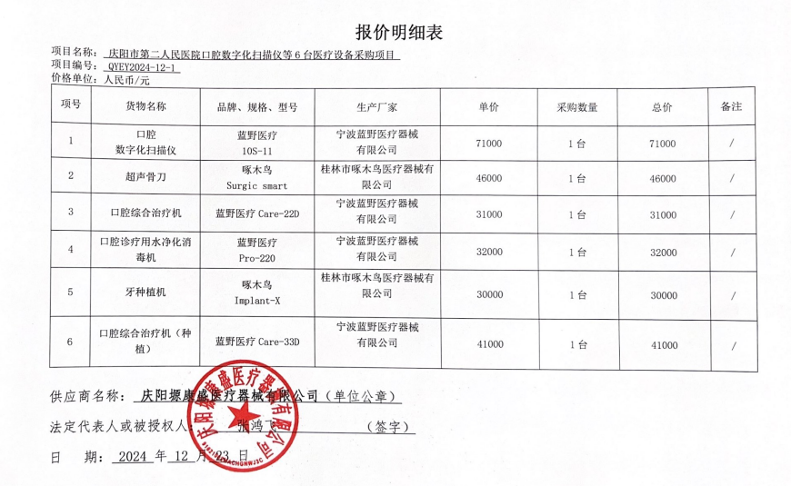 庆阳市第二人民医院口腔数字化扫描仪等 6 台医疗设备采购项目成交公告