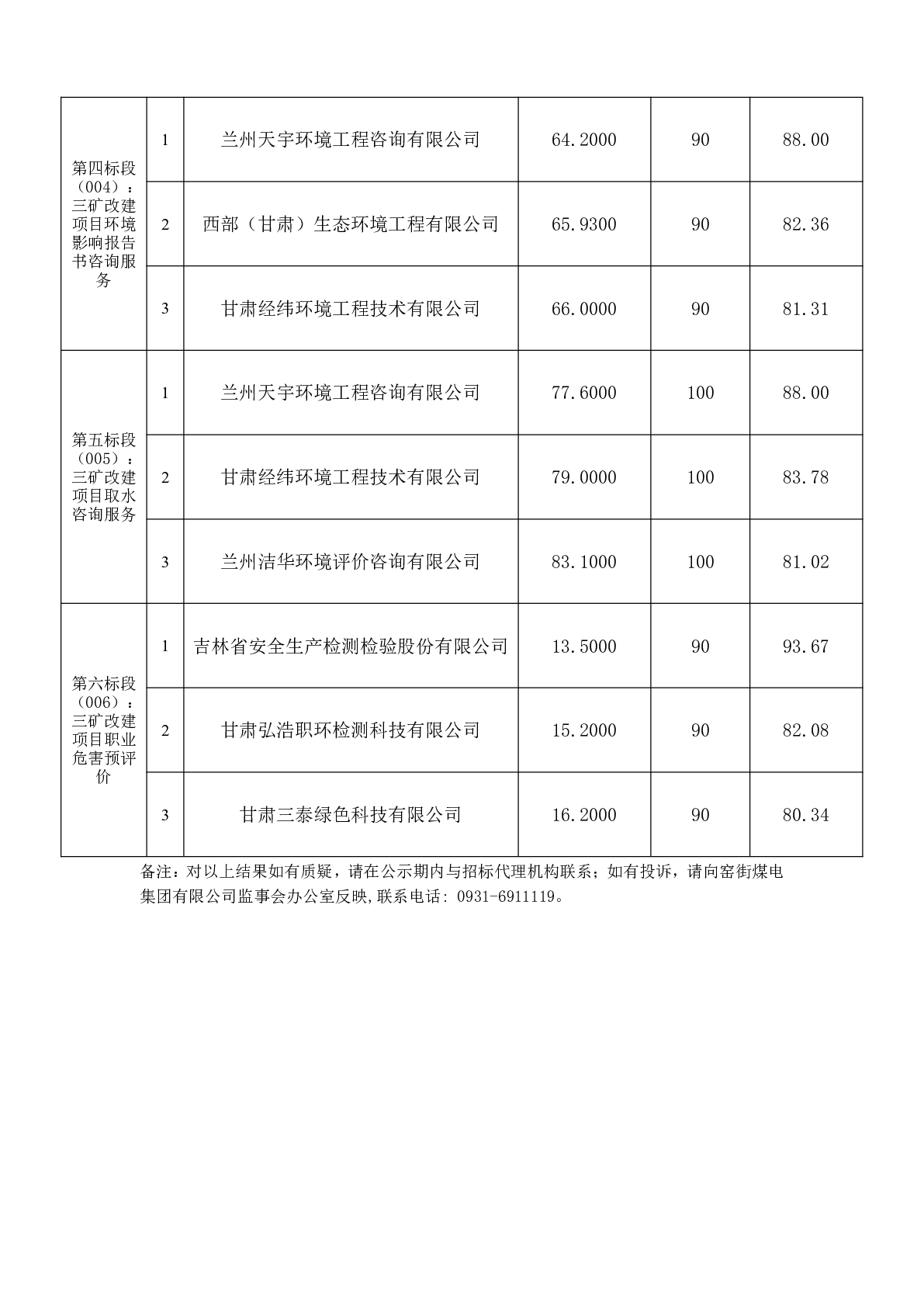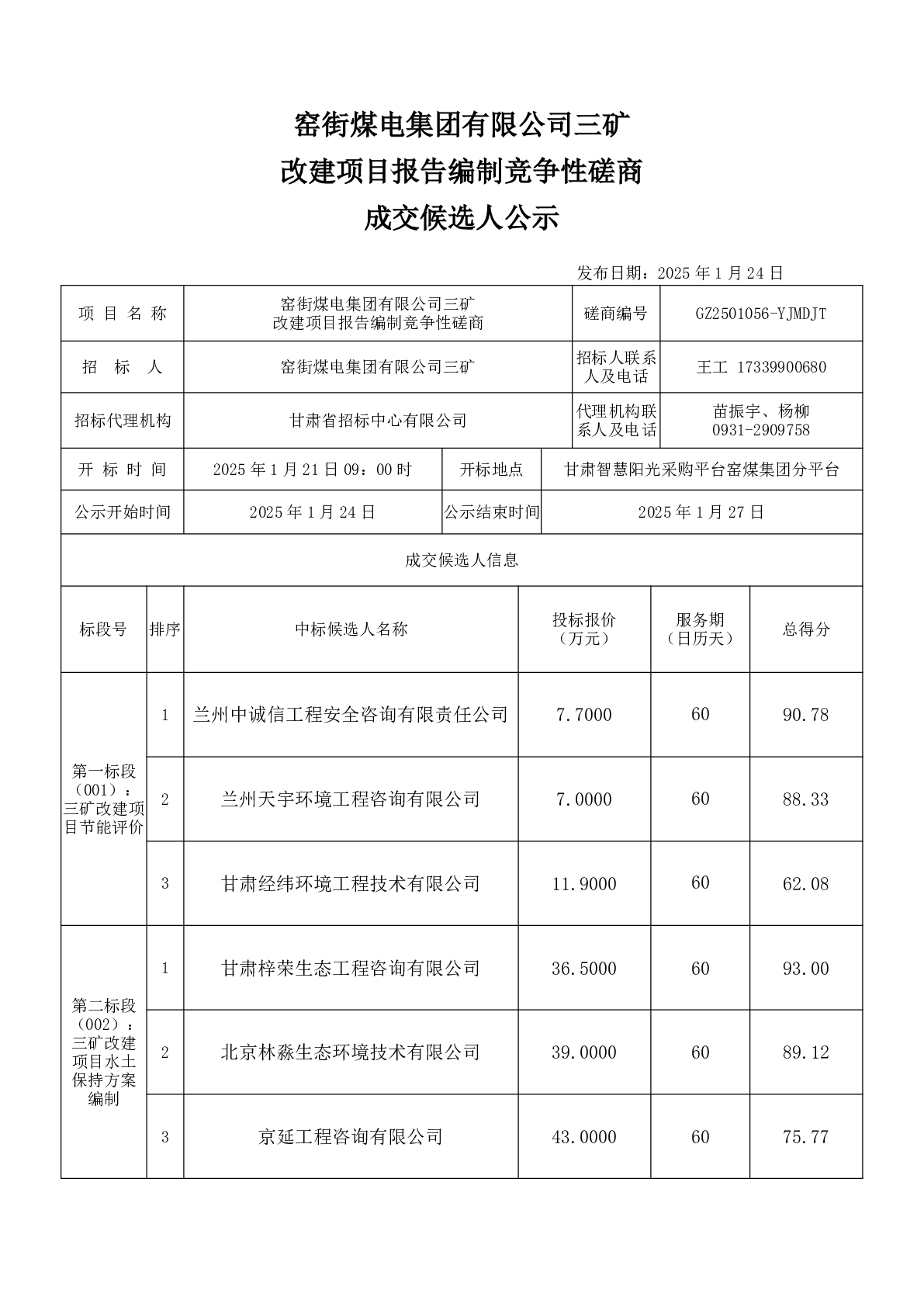 窑街煤电集团有限公司三矿 改建项目报告编制竞争性磋商 成交候选人公示