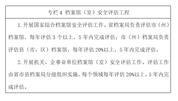 档案安全防线得到新加强。档案安全工作机制和管理制度更加完善,库房和设施设备功能齐全、安全可靠,人防、物防、技防三位一体安全防范体系更加完备,档案安全风险评估管控、隐患排查治理成效和应急管理能力明显提升。