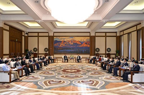 石谋军、何伟、陈青、王锐及李志勋一同会见。(记者张富贵 金鑫 孟捷)