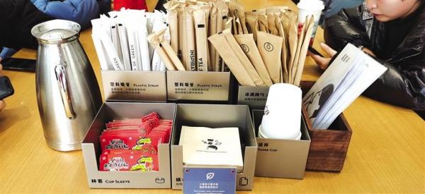 为了不影响奶茶口感,不少奶茶店在提供纸吸管的同时,还提供可降解的塑料吸管,供顾客自己取用。“纸吸管比较环保,我们推荐使用纸吸管。不过如果顾客不喜欢这个口感,我们也会提供可降解的塑料吸管。”喜茶的店员说。