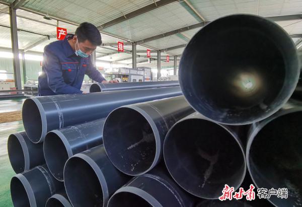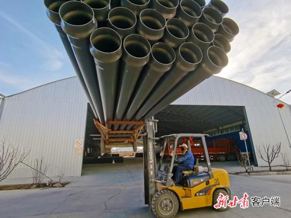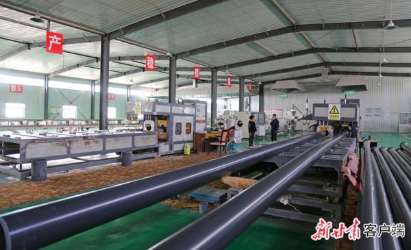 新甘肃客户端山丹讯(新甘肃·甘肃日报记者 范海瑞 通讯员 翟继宗 钱大伟)连日来,山丹县东乐工业集中区张掖金脉节水水电工程公司高效节水管道生产线,正加快生产PE、PVC管道和滴灌带等节水灌溉产品,以应对即将到来的春灌生产。