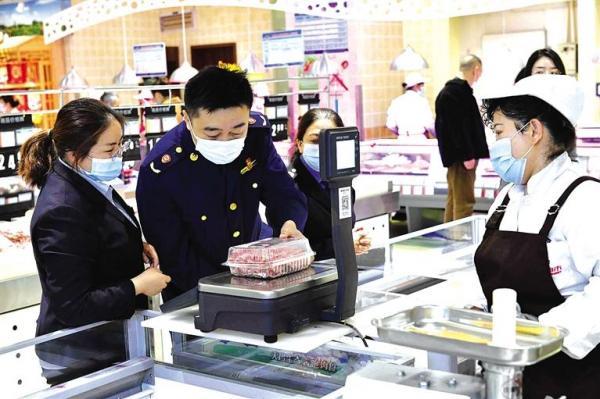 工作人员在超市内抽查