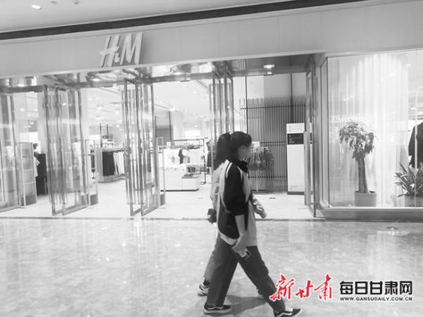 两名顾客路过兰州中心H&M店。