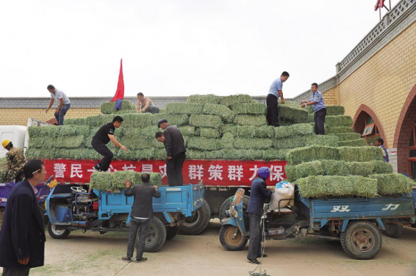 环县公安局在芦家湾乡庙儿掌村组织开展抗旱保收送水送草活动。 陇东报通讯员 杨彦强 摄