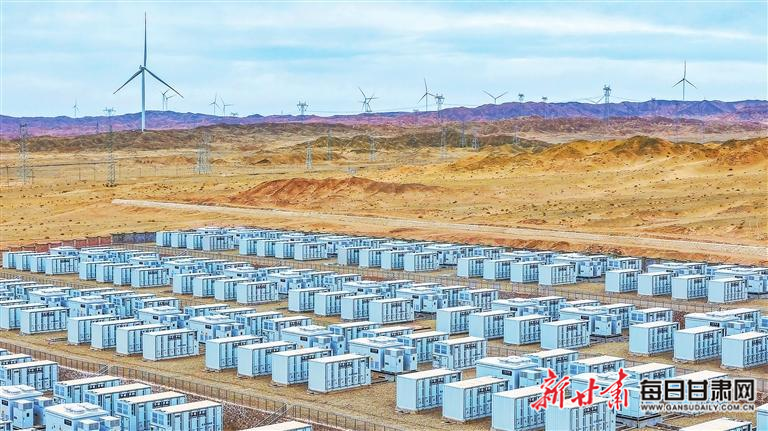 高台县北部滩华景丝路300MW/1200MWh独立储能电站项目建设现场同样热火朝天。施工人员正加紧进行储能电池集装仓的安装调试工作。该项目是沙漠风光互补储电重点项目之一,在推动新能源产业发展的同时,有效带动当地群众增收致富,实现生态效益、经济效益与社会效益同步提升。