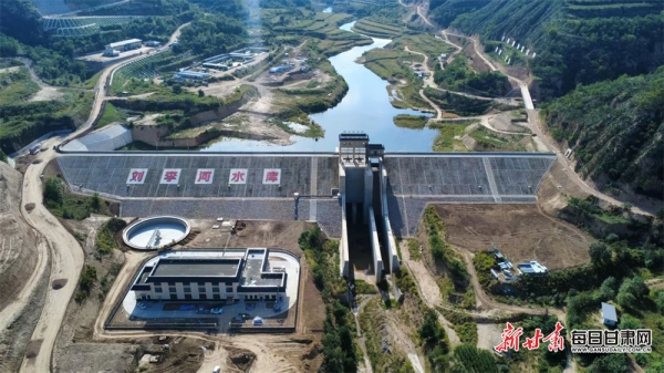 在刘李河水库建设现场,主体工程已全面建成并开始蓄水,工人们正抓紧开展护栏安装、绿化养护及道路柏油罩面等收尾工作。这座总库容335.7万立方米的水库,每年可为北部塬区提供288.9万立方米用水,成为9.72万群众和1.2万亩农田的“新水盆”。