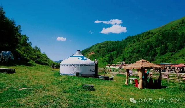 草川大草原坐落于武山县城东南约55公里的温泉镇境内,地处黄河流域与长江流域的分水岭地带,独特的地理环境让这里成为天然的优良牧场。草川的地势绵延逶迤,周边山峰上青松挺拔,林间树木密布,四季皆有景致:夏秋时节,漫山野花竞相绽放,红的、黄的、紫的缀满草甸,牛羊穿梭其间低头觅食,身影与花海相映成趣;冬春之际,大地覆上皑皑白雪,牛羊踏雪而行,留下串串蹄印;更有云雾常年在草甸与山峦间缠绕,勾勒出“暮春烟云、夏之碧波、秋时蓝天、寒冬雪原”的四时盛景,让这片草原愈发显得灵秀动人。