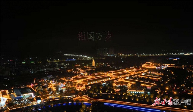 环州故城“月满华诞 光影环州”大型无人机表演秀。
