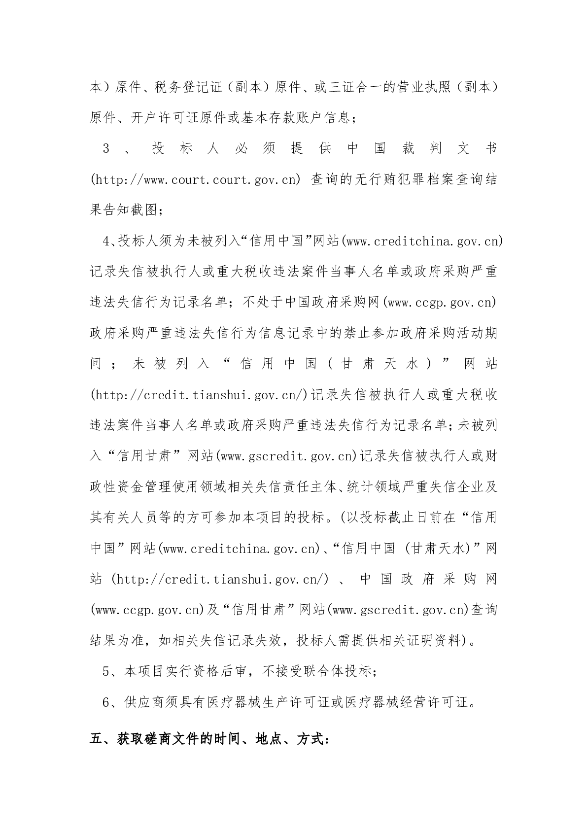 天水市第一人民医院无创正压呼吸机竞争性磋商采购项目招标公告