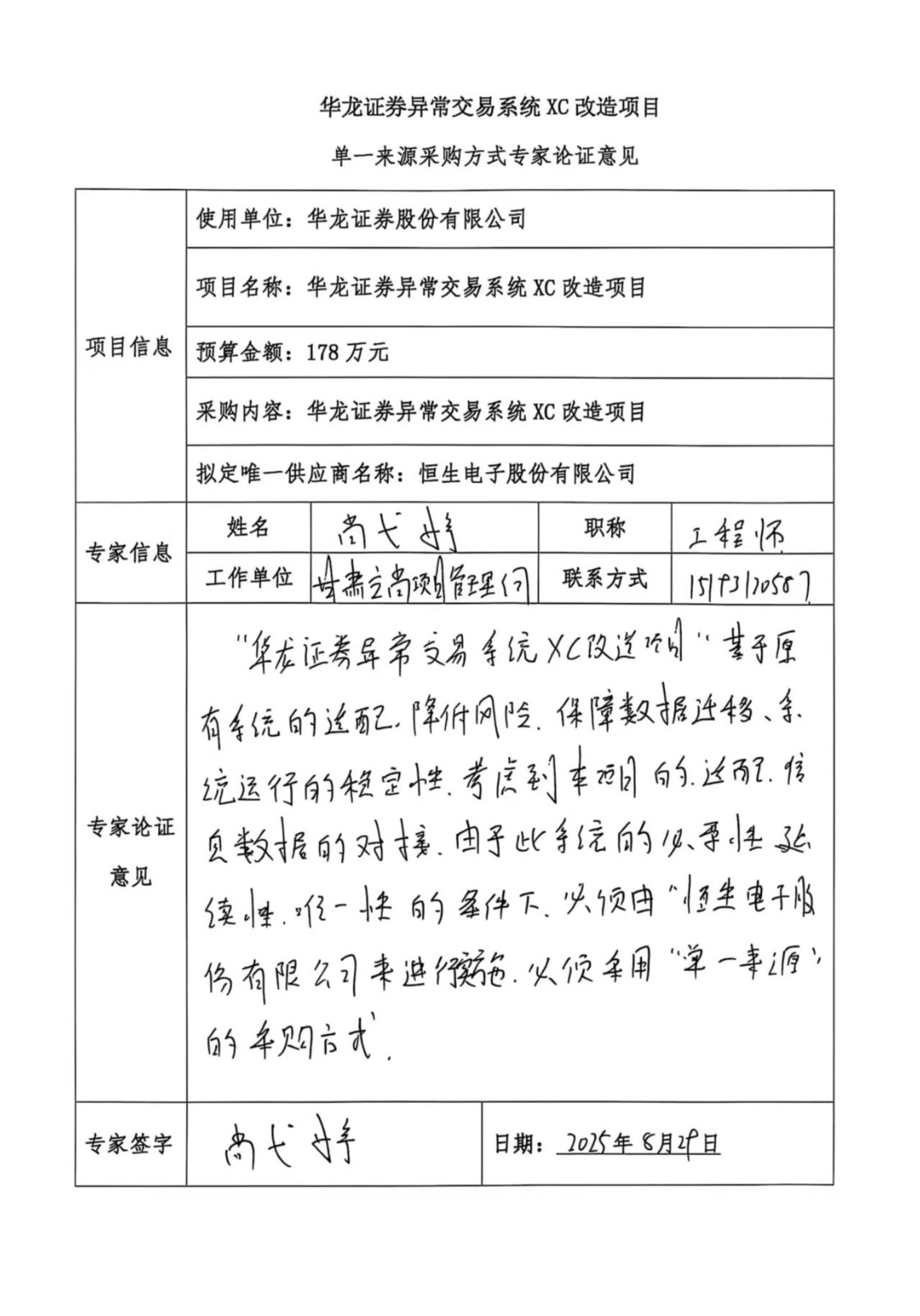 (十)任何供应商、单位或个人对该项目采用单一来源采购方式有异议的,可以在公示期内将书面意见反馈给华龙证券股份有限公司。
