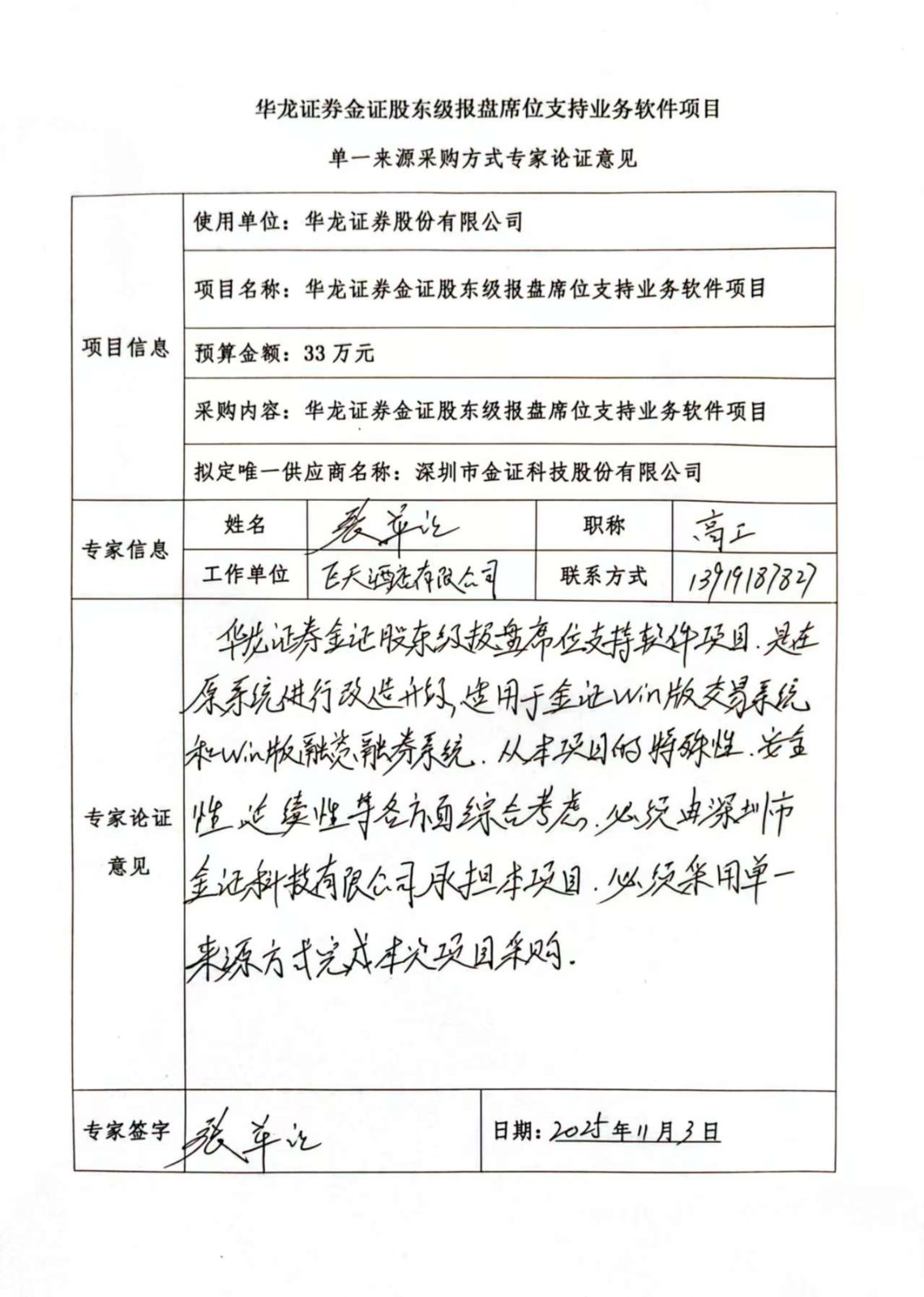 (十)任何供应商、单位或个人对该项目采用单一来源采购方式有异议的,可以在公示期内将书面意见反馈给华龙证券股份有限公司。