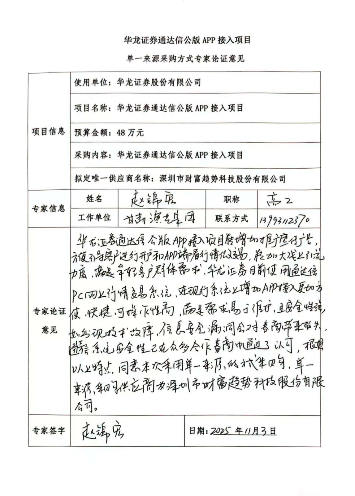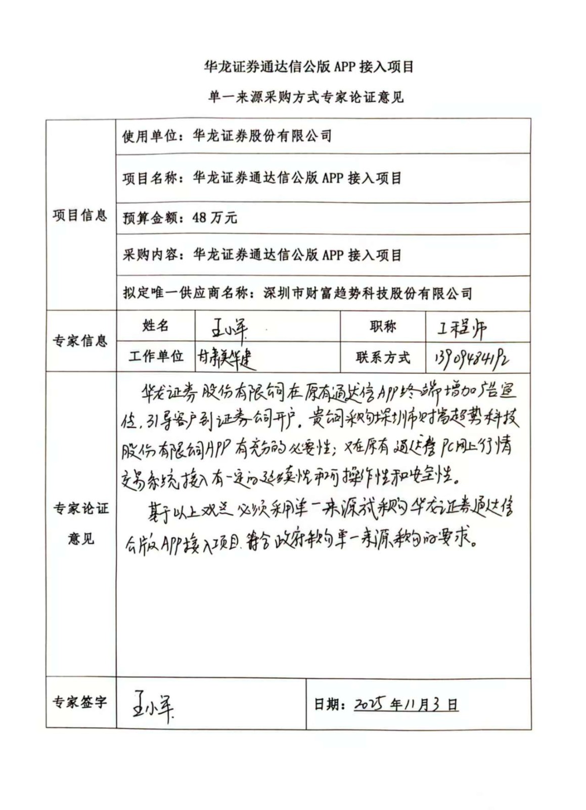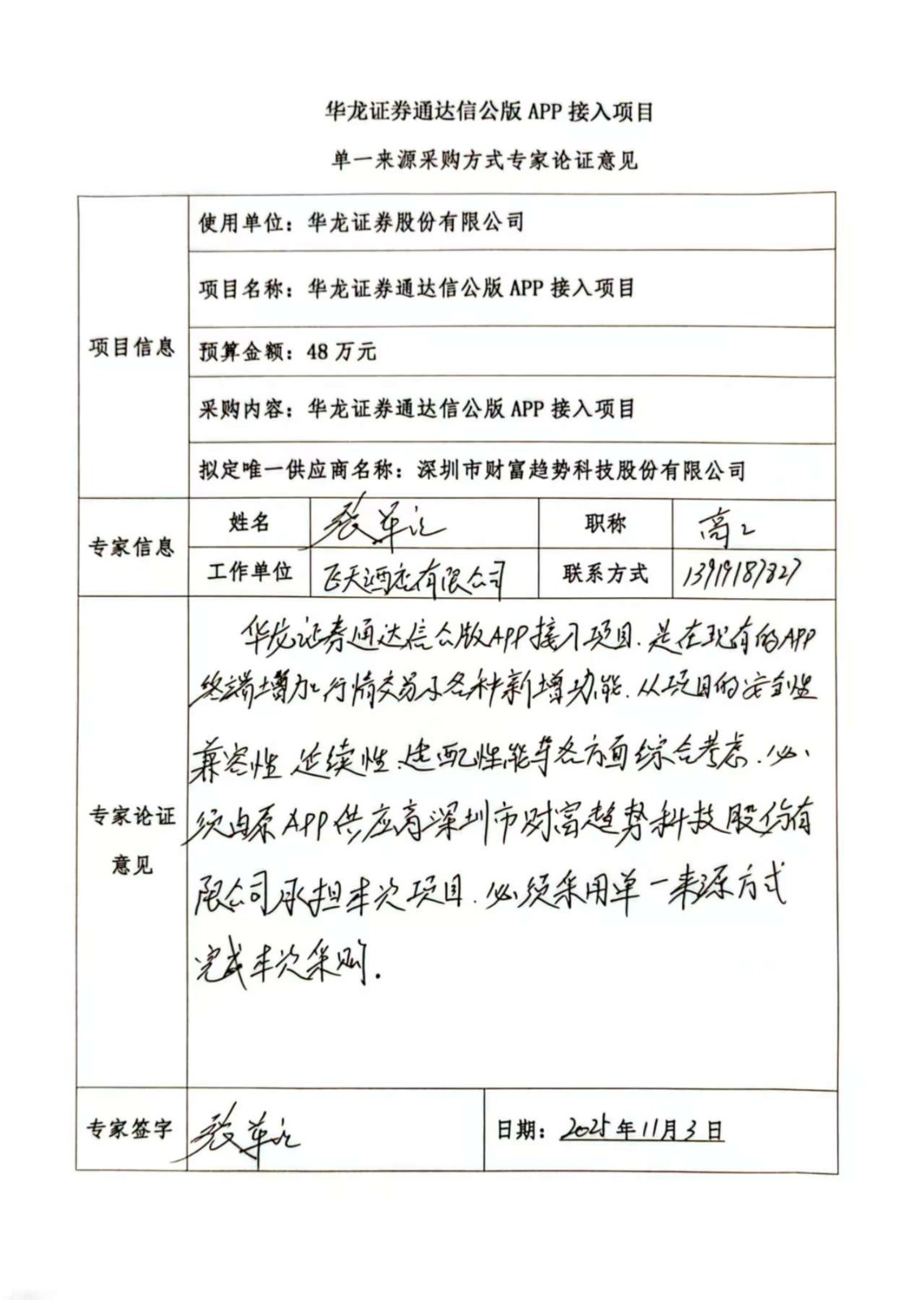(十)任何供应商、单位或个人对该项目采用单一来源采购方式有异议的,可以在公示期内将书面意见反馈给华龙证券股份有限公司。
