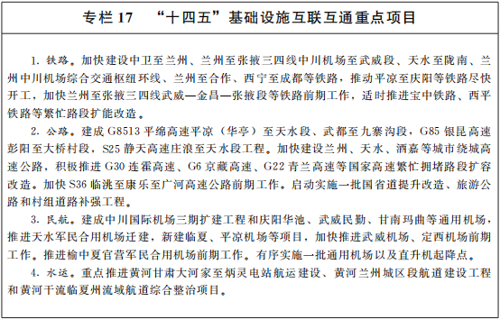 构建多层次开放平台。提升现有开放平台功能,搭建新的开放创新合作平台,为扩大开放和招商引资提供有效载体。提升兰州中川机场、敦煌机场等开放口岸功能。加强兰州新区综合保税区建设。争取在符合条件的地区设立海关特殊监管区域,完善进境粮食、木材、肉类、冰鲜水果、种子种苗海关指定监管场地功能,培育壮大口岸经济。着力建设中国(兰州)跨境电子商务综合试验区和中国(天水)跨境电子商务综合试验区。争取设立农业对外开放合作试验区,深化与“一带一路”沿线国家农牧业合作,支持有实力的企业在海外建立生产加工基地。积极申建国家中医药服务出口基地。积极争取服务贸易创新发展试点,积极申建中国(甘肃)自由贸易试验区。