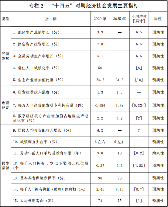 “十四五”发展目标: