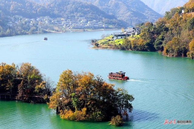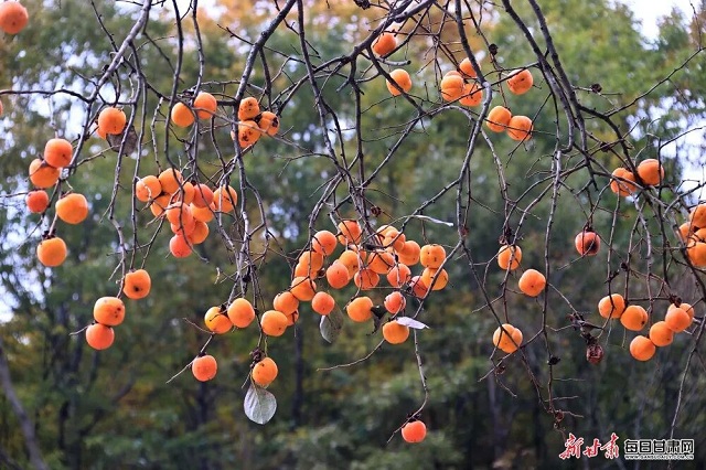 山脚下的胡杨林虽褪去了盛夏的浓绿