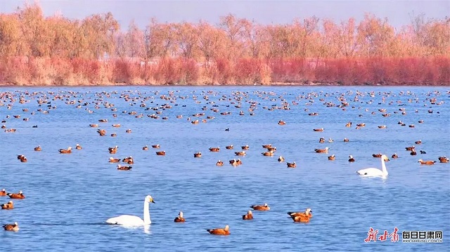 与广袤湿地、澄澈湖水、苍茫苇荡相映成趣