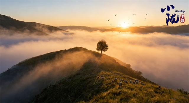 晨光初露时,薄雾浮动于沟壑之间,黄土塬的轮廓在光线中起伏,与飞翔的鸟儿、走过坡地的羊群与塬面草色,构成一幅绚丽的画卷。