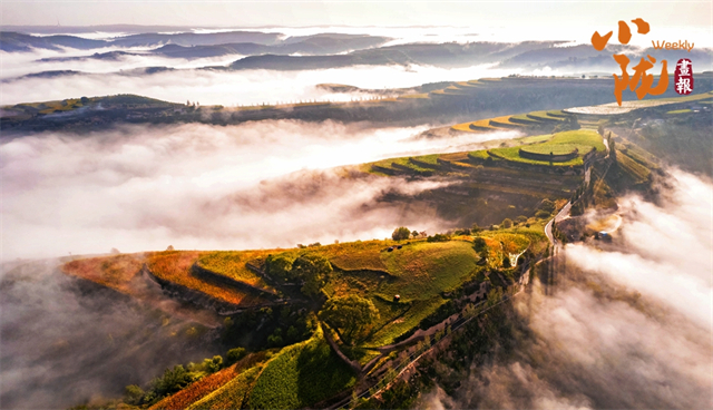 清晨,云海、山岭与楼宇,恍如人间仙境一般。这不仅是视觉的盛宴,更是对黄土塬生态之美的深情礼赞:昔日这片贫瘠荒凉的土地,眼下已是生机勃发、绿意盎然。