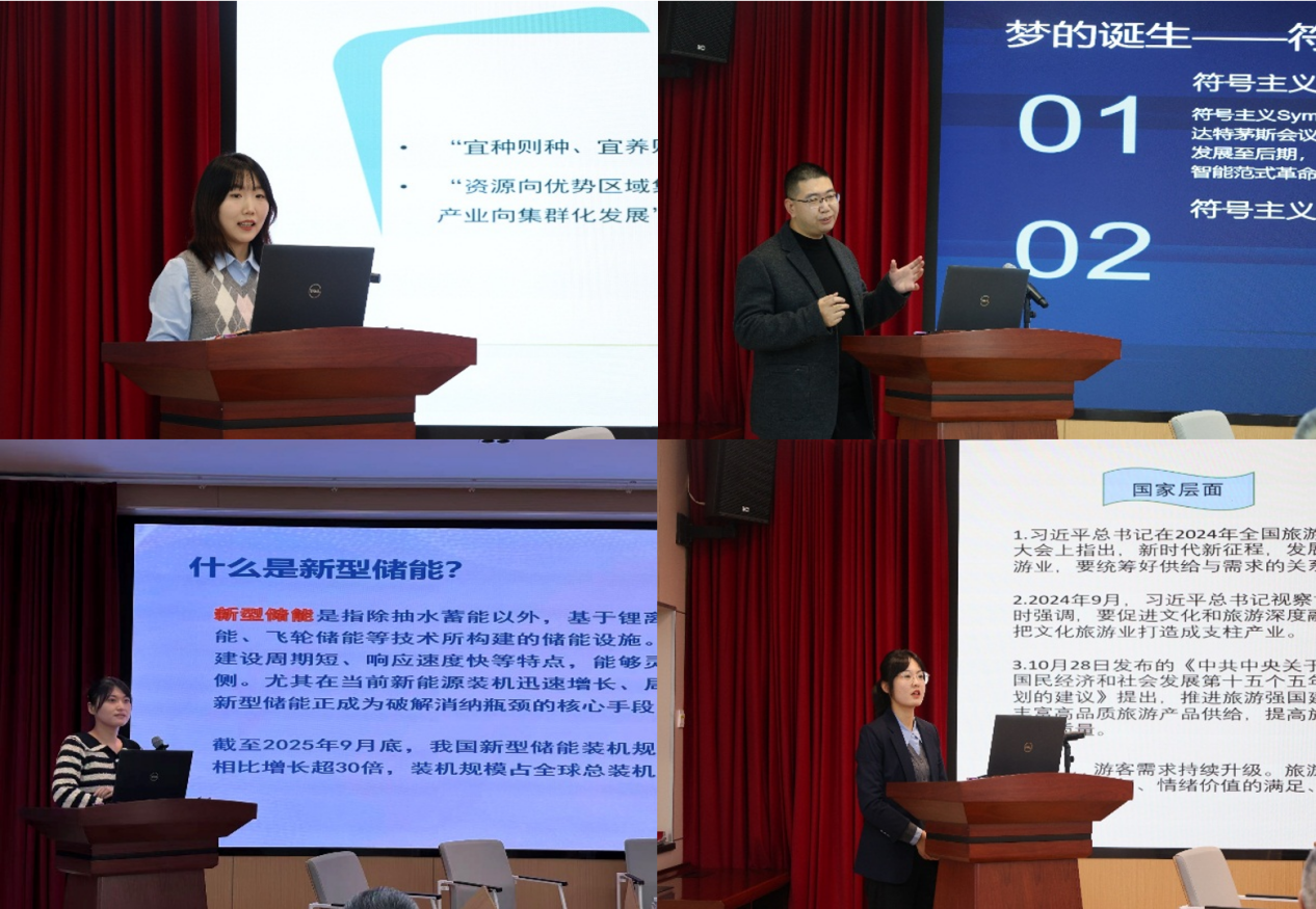 为深入学习宣传贯彻党的二十届四中全会精神,推动习近平经济思想体系化、学理化研究走深走实,进一步加强全院学术交流,促进青年干部业务提升,省经济研究院于12月2日举办了2025年青年学术论坛。本次论坛主题为“七地一屏一通道”——中国式现代化的甘肃实践”,来自我院不同室(中心)的8名青年代表分享他们的最新研究成果,院党委书记周弘、院长柴丽萍、副院长邓育洲、陈玉宝及全体干部职工出席会议。
