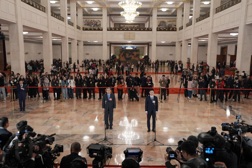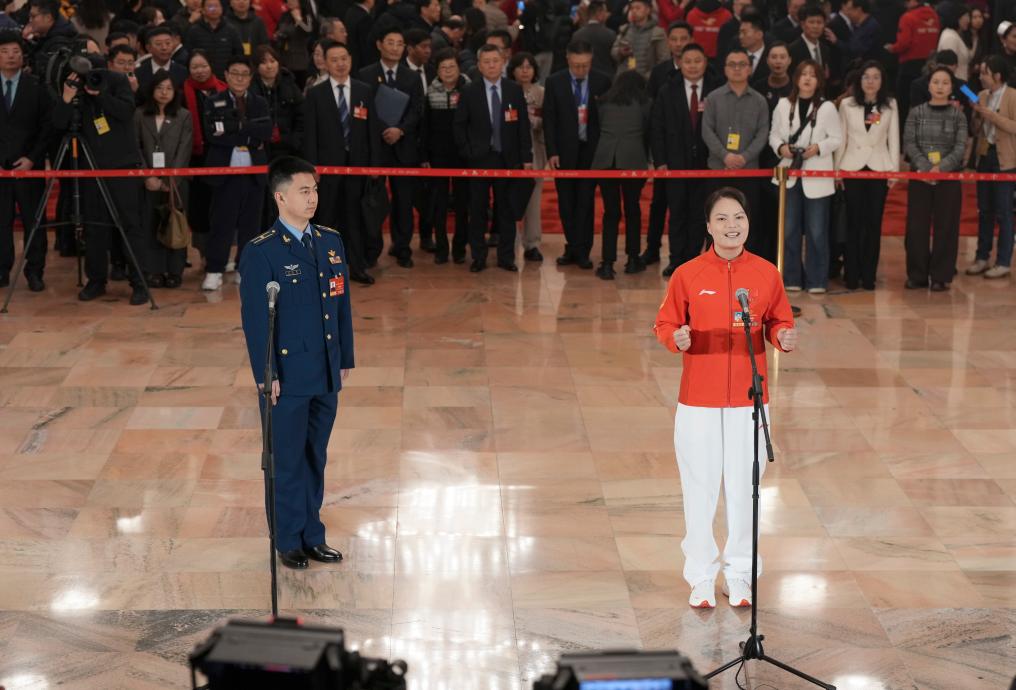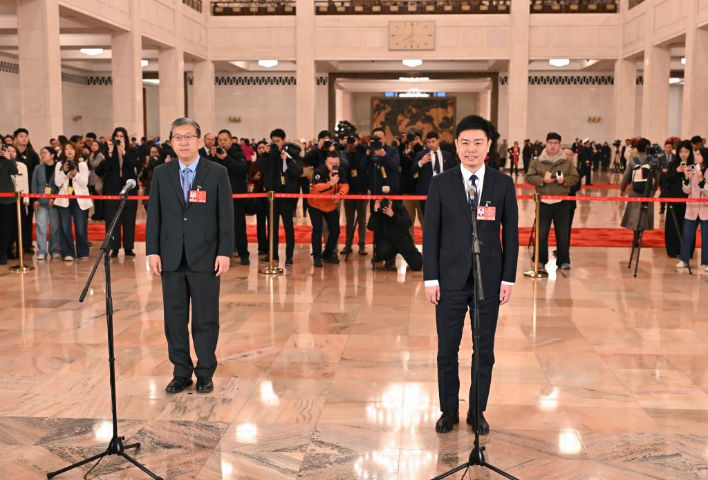 3月5日,第十四届全国人民代表大会第四次会议首场“代表通道”集中采访活动在北京人民大会堂举行。新华社记者 王曦 摄
